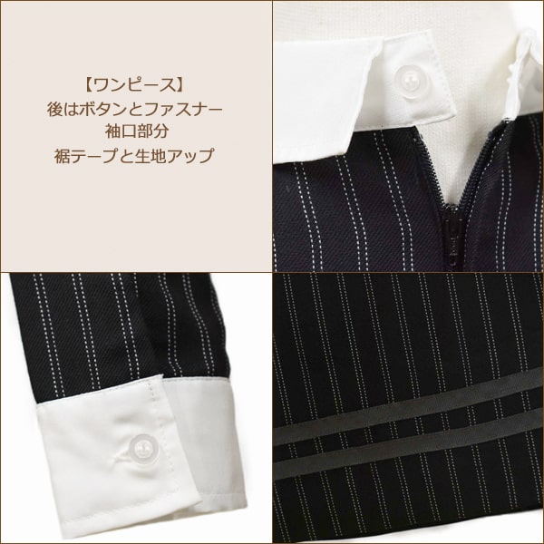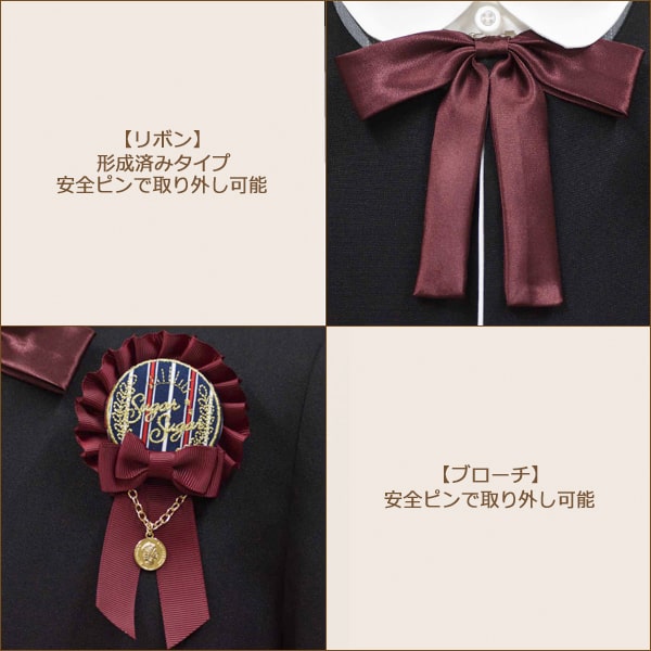 | 商品説明 | ※sugarsugar(シュガーシュガー)の子供用フォーマルスーツ/卒業式服。ボレロジャケット(灰/黒)・長袖ワンピース(黒・灰/ストライプ)・リボン(臙脂)・ブローチのアンサンブルスーツ4点セット。 ※卒業式・入学式にはもちろん、発表会・結婚式・お受験等幅広く活躍できます。 ※ノーカラーボレロジャケットの前はホックで開け閉め可能。裏地付き!ポケットは付いていません。ブローチは安全ピンで取り外し可能です。 ※リボンは形成済みタイプ。安全ピンで取り外し可能です。 ※ブラウスと一体型になったレイヤード風ピンストライプ柄ワンピースの後ろはボタンとファスナーで開きます。裏地付き!ポケットは付いていません。 | |
