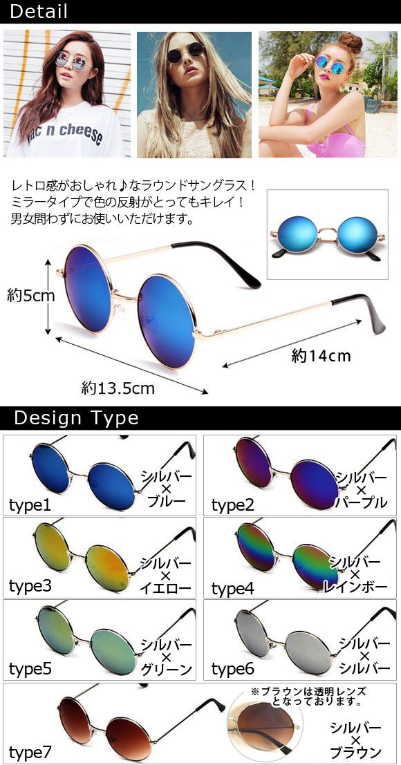 ラウンドミラーサングラス ミラーレンズ/透明レンズ 男女兼用 レトロ感がおしゃれ♪ 選べる18タイプ AP-AR026