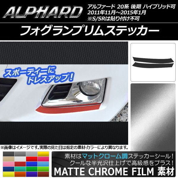 フォグランプリムステッカー マットクローム調 トヨタ アルファード 20系 後期 ハイブリッド可 選べる20カラー 入数:1セット(2枚) AP-MTCR753 カラー: ブラック ホワイト レッド ブルー イエロー グリーン オレンジ パープル ピンク ネイビー ブラウン ボルドー ゴールド シルバー ガンメタリック マゼンタ ライトグリーン ライトブルー ライトゴールド シアン