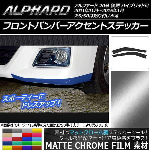 フロントバンパーアクセントステッカー トヨタ アルファード 20系 後期 ハイブリッド可 マットクローム調 選べる20カラー AP-MTCR750 入数:1セット(4枚)