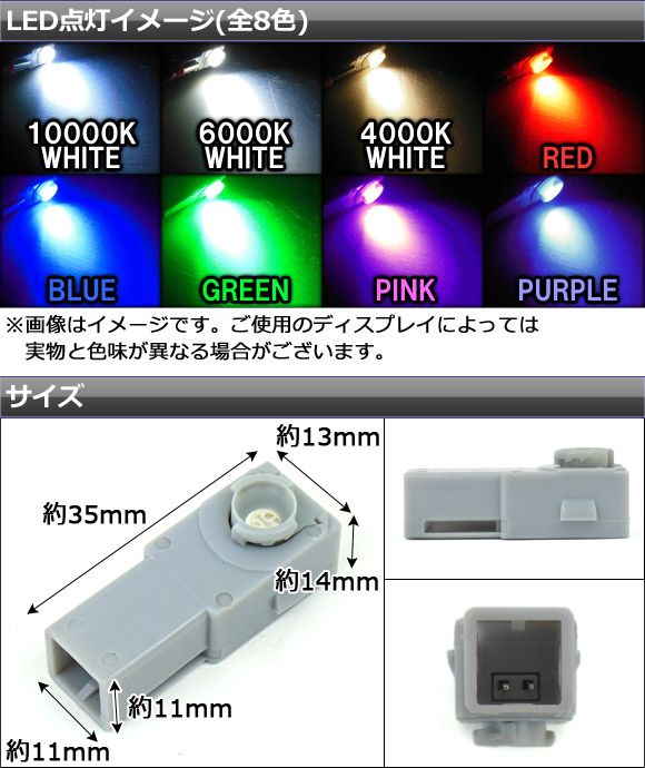 汎用LEDインナーランプ 高輝度SMDチップ搭載 選べる8カラー AP-INLED-3C カラー: レッド ブルー グリーン パープル ピンク 10000k白 4000k白 6000k白