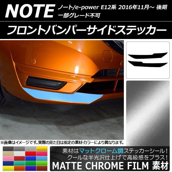 フロントバンパーサイドステッカー ニッサン ノート/ノートe-power E12系 マットクローム調 選べる20カラー AP-MTCR3270 入数:1セット(2枚)