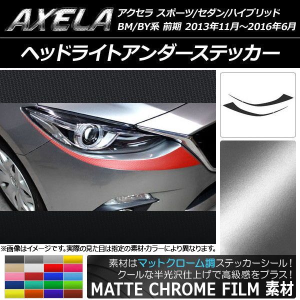 ヘッドライトアンダーステッカー マツダ アクセラ BM系/BY系 マットクローム調 選べる20カラー AP-MTCR1423 入数:1セット(4枚)