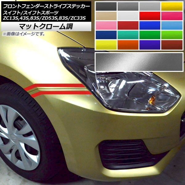 フロントフェンダーストライプステッカー スイフト/スイフトスポーツ ZC13S/ZC43S/ZC83S/ZD53S/ZD83S/ZC33S マットクローム調 選べる20カラー AP-MTCR3875 入数:1セット(4枚)