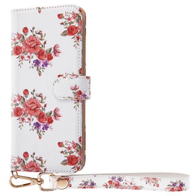 レイアウト あんしんスマホ(KY-51B)用 手帳型ケース ハンドストラップ ルーペ付 花柄(ピンク) RT-AKYB51ALC/FP返品種別A