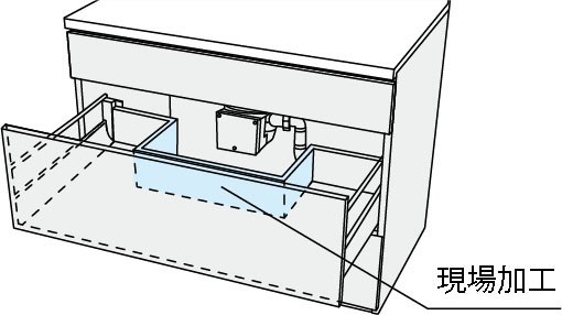 スライドストッカータイプ シンクキャビネット中段引出しをディスポーザーが設置できるように現場加工するためのキットです。