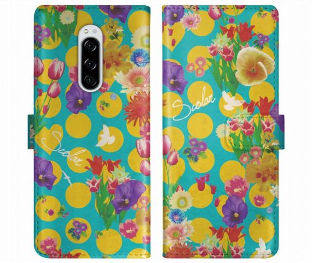 Xperia 10 VII SO-52F/SOG16 ケース 手帳型 ScoLar スカラー スマホケース エクスペリア SO-51F SOG15 SO-52E SO-51E SO-52D SO-54C スマホカバー スタンド付 多機種対応 花 フラワー 鳥 水玉 シック