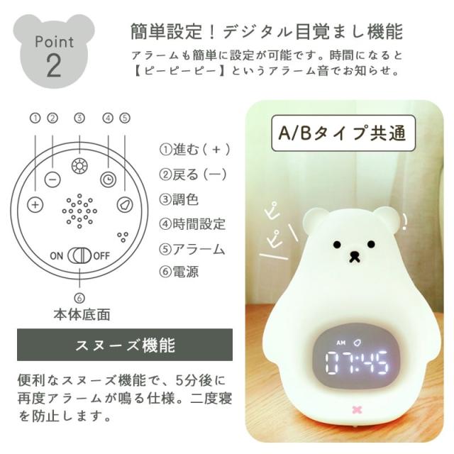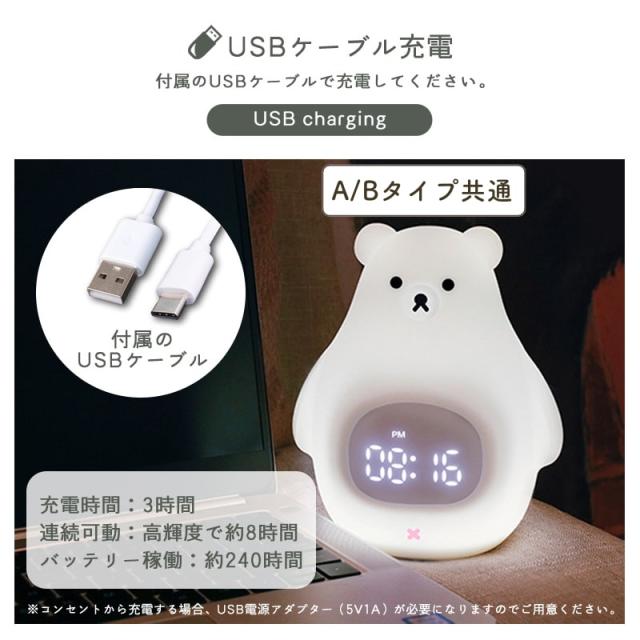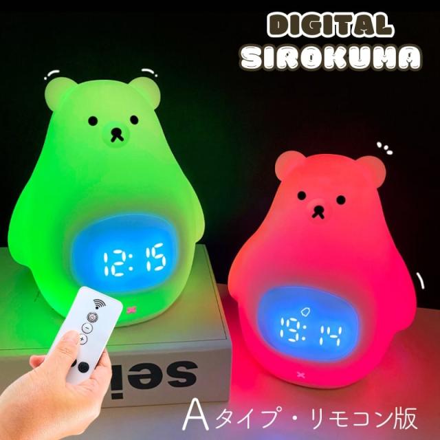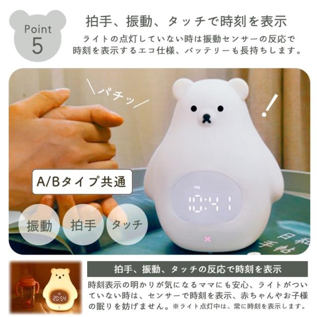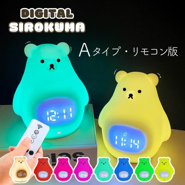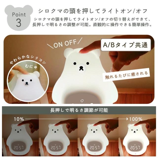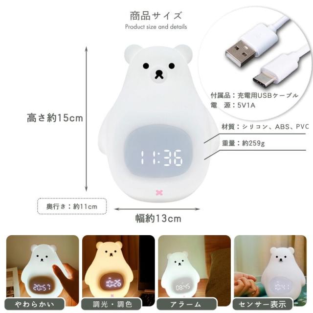 置き時計 置時計 デジタル時計 目覚まし時計 光 ライト ナイトライト ベッドライト 授乳ライト ギフト 女の子 男の子 シロクマ 白くま