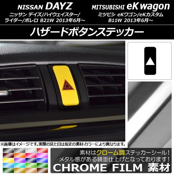 ハザードボタンステッカー クローム調 ニッサン/ミツビシ デイズ/eKワゴン B21W/B11W 前期/後期 2013年06月〜 選べる20カラー AP-CRM3701
