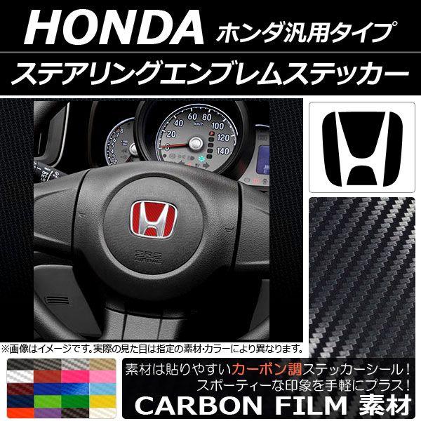 ステアリングエンブレムステッカー カーボン調 ホンダ汎用タイプ 選べる20カラー AP-CF895 カラー: ブラック ホワイト レッド ブルー イエロー グリーン オレンジ パープル ピンク ネイビー ブラウン ボルドー クリア ゴールド シルバー ガンメタリック マゼンタ ダークグリーン メタリックブルー ライトブルー