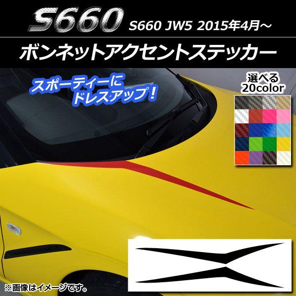 ボンネットアクセントステッカー ホンダ S660 JW5 2015年04月〜 カーボン調 選べる20カラー AP-CF2012 入数:1セット(2枚)