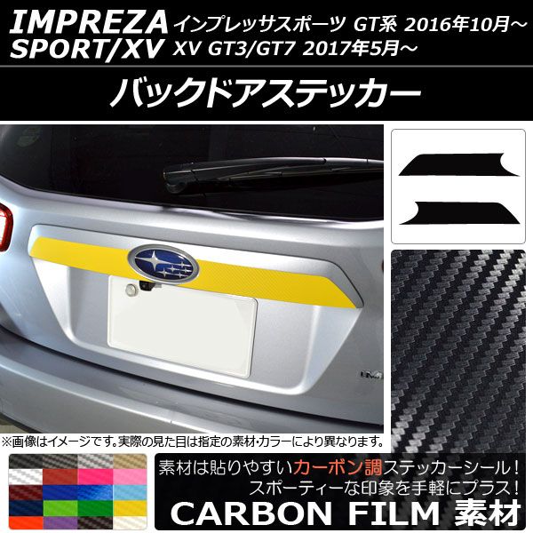 バックドアステッカー カーボン調 スバル インプレッサスポーツ/XV GT系 2016年10月〜 選べる20カラー 入数:1セット(2枚) AP-CF2086 カラー: ブラック ホワイト レッド ブルー イエロー グリーン オレンジ パープル ピンク ネイビー ブラウン ボルドー クリア ゴールド シルバー ガンメタリック マゼンタ ダークグリーン メタリックブルー ライトブルー