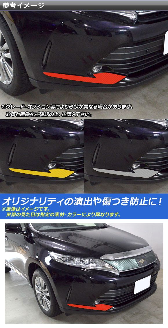 フロントバンパーサイドステッカー トヨタ ハリアー/ハリアーハイブリッド 60系 GRスポーツ不可 カーボン調 選べる20カラー AP-CF4202 入数:1セット(2枚)