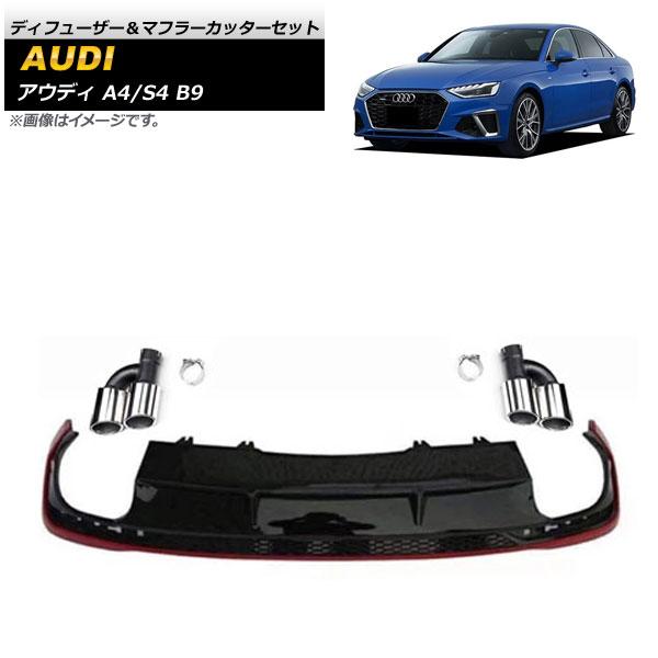 ディフューザー&マフラーカッターセット アウディ A4/S4 B9 Sライン 2019年〜 ブラック×レッド ABS樹脂製 AP-XT1238-BKRD