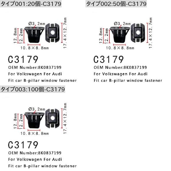 AL オート ファスナー 適用: VOLKWAGEN アウディ/AUDI A4 S4 RS4 A5 S5 Q5 Q3 A3 バックル 8K0837199 B-ピラー ウインドウ クランプ 50個-C3179 AL-MM-1085