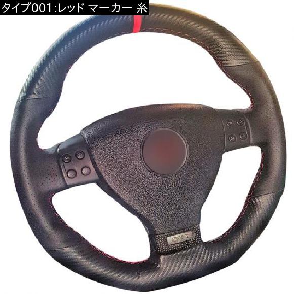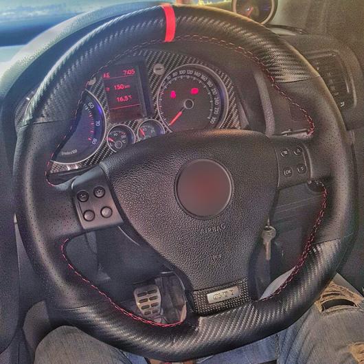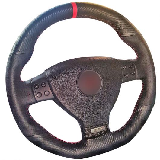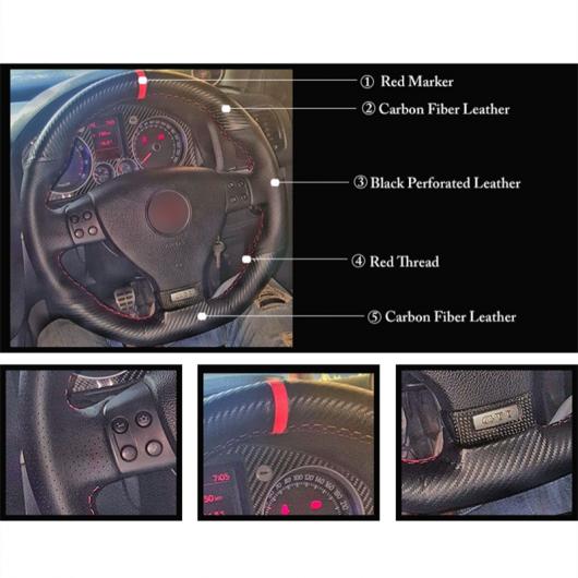 ステアリングホイールカバー 編み上げタイプ カーボンファイバー レザー ブラック レザー 適用: フォルクスワーゲン ゴルフ 5 MK5 GTI VW ゴルフ 5 R32 パサート R GT 2005 レッド マーカー 糸 AL-FF-0695 AL