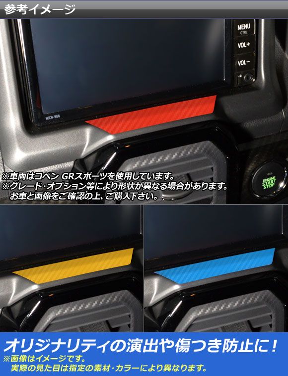 センターパネルアクセントステッカー カーボン調 トヨタ ダイハツ コペン ローブ/エクスプレイ/GRスポーツ LA400A LA400K 選べる20カラー AP-CF2578 カラー: ブラック ホワイト レッド ブルー イエロー グリーン オレンジ パープル ピンク ネイビー ブラウン ボルドー クリア ゴールド シルバー ガンメタリック マゼンタ ダークグリーン メタリックブルー ライトブルー