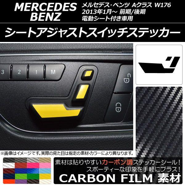 シートアジャストスイッチステッカー カーボン調 メルセデス・ベンツ Aクラス W176 2013年01月〜 選べる20カラー AP-CF2817 カラー: ブラック ホワイト レッド ブルー イエロー グリーン オレンジ パープル ピンク ネイビー ブラウン ボルドー クリア ゴールド シルバー ガンメタリック マゼンタ ダークグリーン メタリックブルー ライトブルー