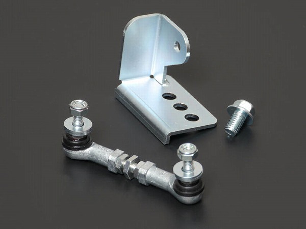 オートレベライザーの純正リンクと交換し、アジャストロッドの長さをターンバックルで調整することによって車体の姿勢検知センサーをノーマル状態の正しい位置へ補正することができます。