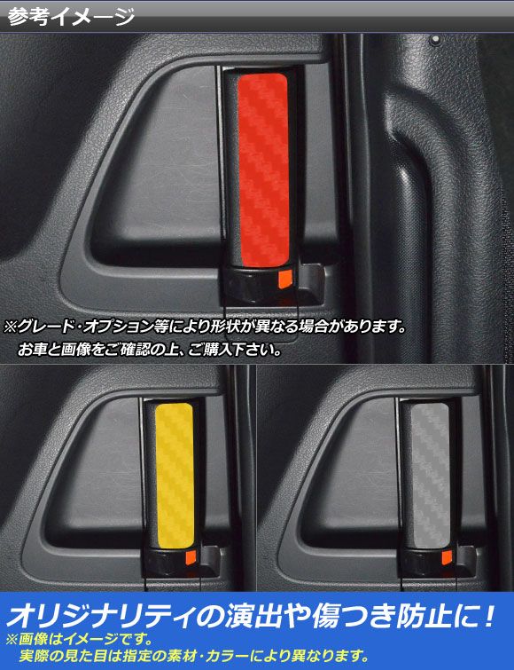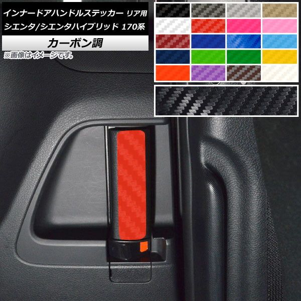 インナードアハンドルステッカー カーボン調 リア用 トヨタ シエンタ/シエンタハイブリッド 170系 選べる20カラー 入数:1セット(2枚) AP-CF3947 カラー: ブラック ホワイト レッド ブルー イエロー グリーン オレンジ パープル ピンク ネイビー ブラウン ボルドー クリア ゴールド シルバー ガンメタリック マゼンタ ダークグリーン メタリックブルー ライトブルー