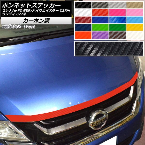 ボンネットステッカー ニッサン スズキ セレナ/e-POWER/ハイウェイスター ランディ C27系 カーボン調 選べる20カラー AP-CF3964