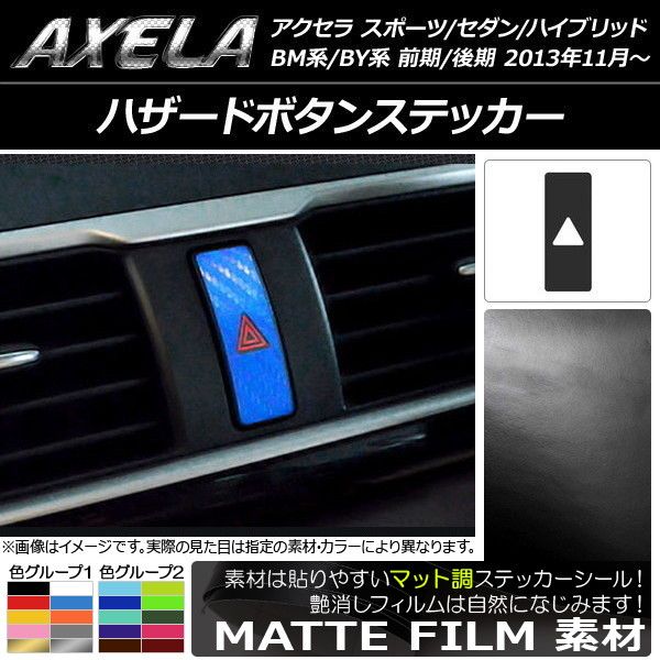 ハザードボタンステッカー マツダ アクセラ スポーツ/セダン/ハイブリッド BM系/BY系 マット調 色グループ1 AP-CFMT1444
