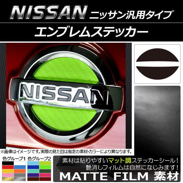 エンブレムステッカー マット調 ニッサン汎用タイプ フロント/リアどちらかに使用可能!(詳しくは画像でサイズをご確認ください) 色グループ1 AP-CFMT1916 色グループ1: ブラック ホワイト レッド ブルー イエロー オレンジ ピンク グレー ゴールド シルバー