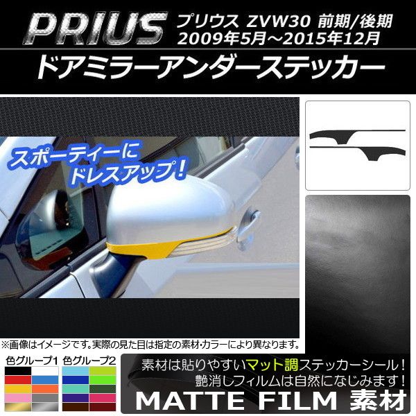 ドアミラーアンダーステッカー マット調 トヨタ プリウス ZVW30 前期/後期 2009年05月〜2015年12月 色グループ2 入数:1セット(2枚) AP-CFMT157
