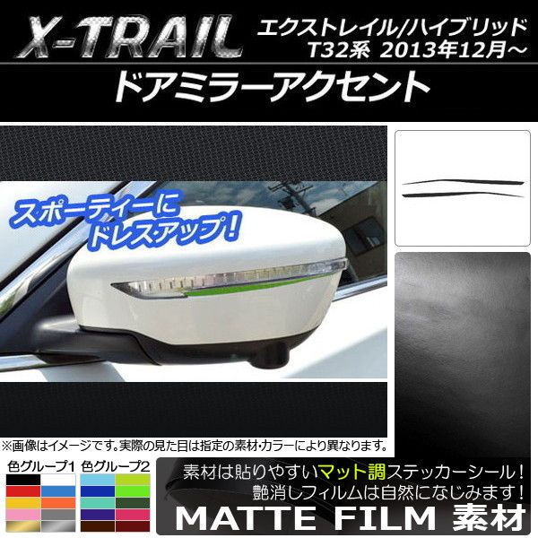 ドアミラーアクセントステッカー マット調 ニッサン エクストレイル/ハイブリッド T32系 2013年12月〜 色グループ2 入数:1セット(2枚) AP-CFMT356