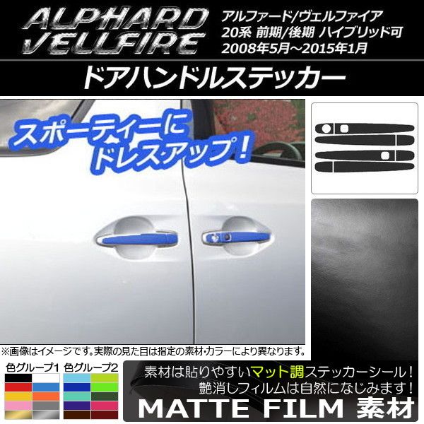 ドアハンドルステッカー マット調 トヨタ アルファード/ヴェルファイア 20系 前期/後期 ハイブリッド可 色グループ2 入数:1セット(8枚) AP-CFMT708