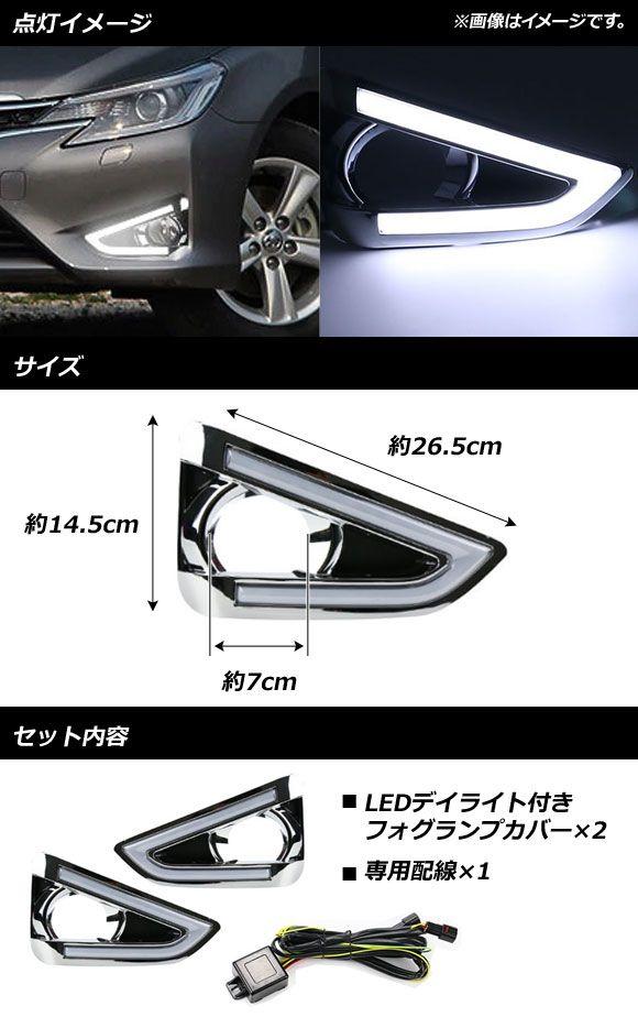 フォグランプカバー トヨタ マークX GRX130,GRX133,GRX135 中期 ホワイト デイライト付き AP-FL074