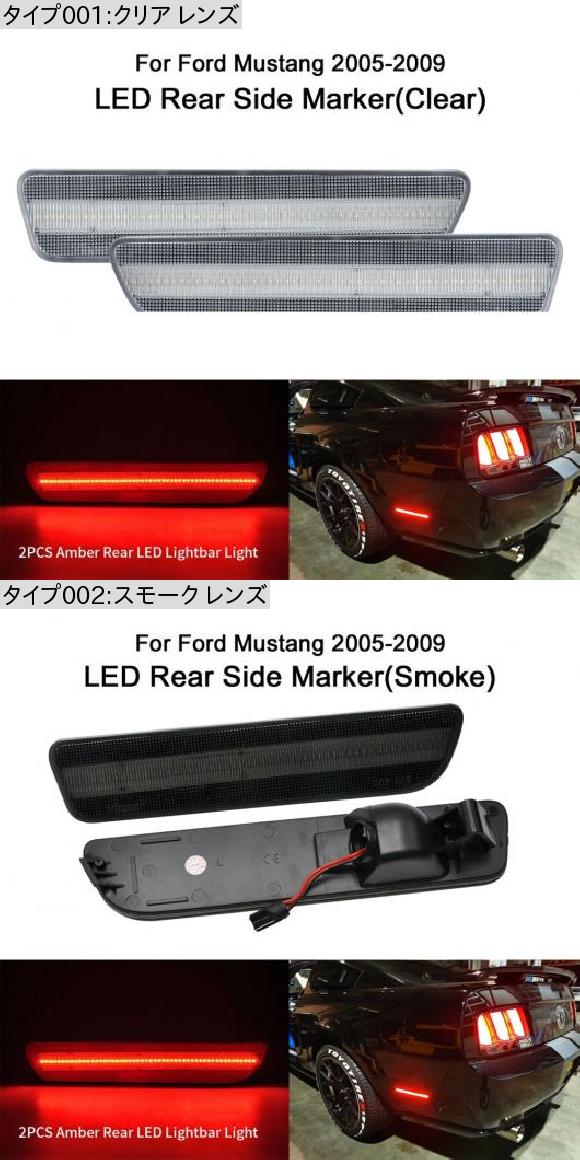 AL 2ピース 適用: マスタング レッド パーキング ランプ LED リア サイド マーカー ライト フォード/FORD マスタング 2005-2009 クリア レンズ・スモーク レンズ AL-JJ-5798