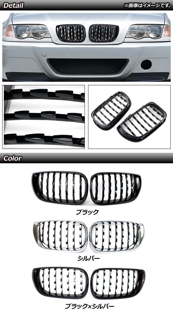 フロントグリルカバー BMW 3シリーズ E46 後期 4ドア車用 2002年〜2005年 シルバー ABS製 入数:1セット(2個) AP-FG310-SI