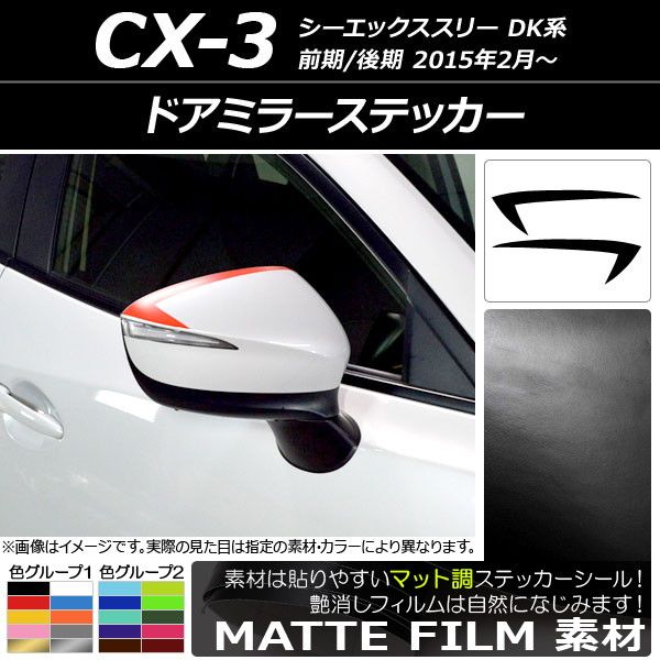 ドアミラーステッカー マット調 マツダ CX-3 DK系 前期/後期 2015年02月〜 色グループ2 入数:1セット(2枚) AP-CFMT3192