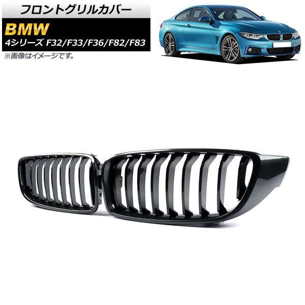 フロントグリルカバー BMW 4シリーズ 2013年〜2020年 ブラックカーボン×ブラック Cタイプ ABS製 シングルバー AP-FG324-C 入数:1セット(2個)