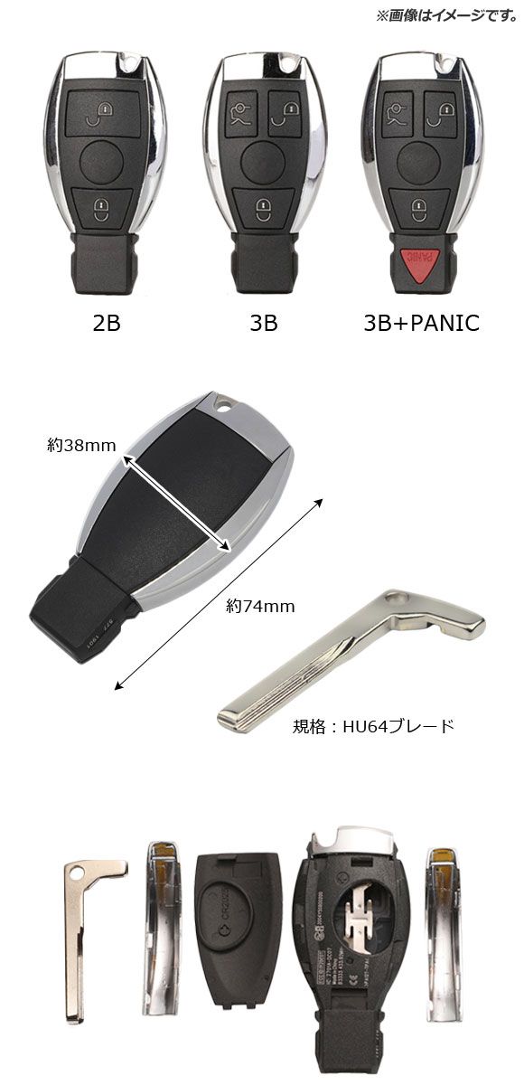 ブランクキー/キーシェルリモコン 規格:HU64 3ボタン+パニックボタン メルセデス・ベンツ汎用 AP-AS365-3B-PANIC