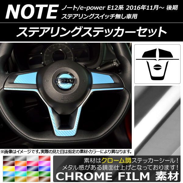 ステアリングステッカーセット クローム調 ニッサン ノート/ノートe-power E12系 選べる20カラー AP-CRM3334