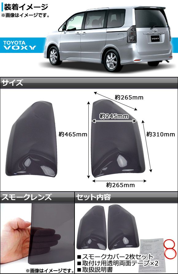 テールライトスモークレンズカバー トヨタ ヴォクシー 70系(ZRR70G/ZRR75G/ZRR70W/ZRR75W) 前期 2007年06月〜2010年04月 AP-SK17 入数:1セット(2枚)