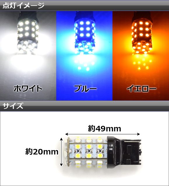 AP LEDバルブ T20 シングル球 SMD 39連 選べる3カラー AP-7440-39SMD 入数:2個 カラー: ホワイト ブルー イエロー