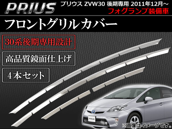 フロントグリルカバー トヨタ プリウス ZVW30 後期専用 フォグランプ装備車 2011年12月〜 シルバー 入数:1セット(4本) AP-UCG-T33A