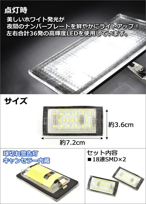 LEDライセンスランプ BMW 3シリーズ/E46 クーペ 前期 ti/カブリオレを除く 1998年〜2003年 ホワイト 18連 AP-BMNUB-E46-2D 入数:1セット(2個)