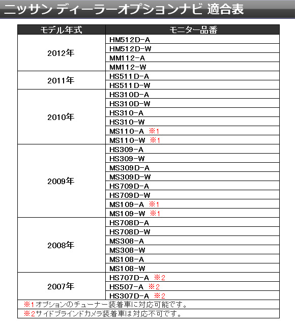 [ニッサン ディーラーオプションナビ 適合品番]