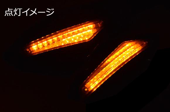 LED付きなのでウインカーに連動して点灯します!