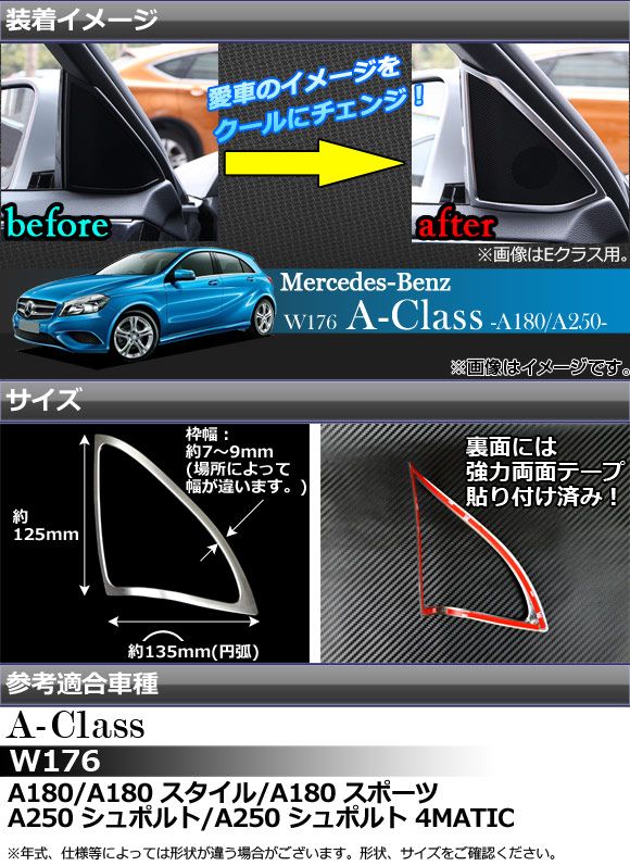 ドアスピーカートリム メルセデス・ベンツ Aクラス W176 2012年11月〜 ABS製 ツイーター用 W176専用 マット調 AP-IT008 入数:1セット(左右)