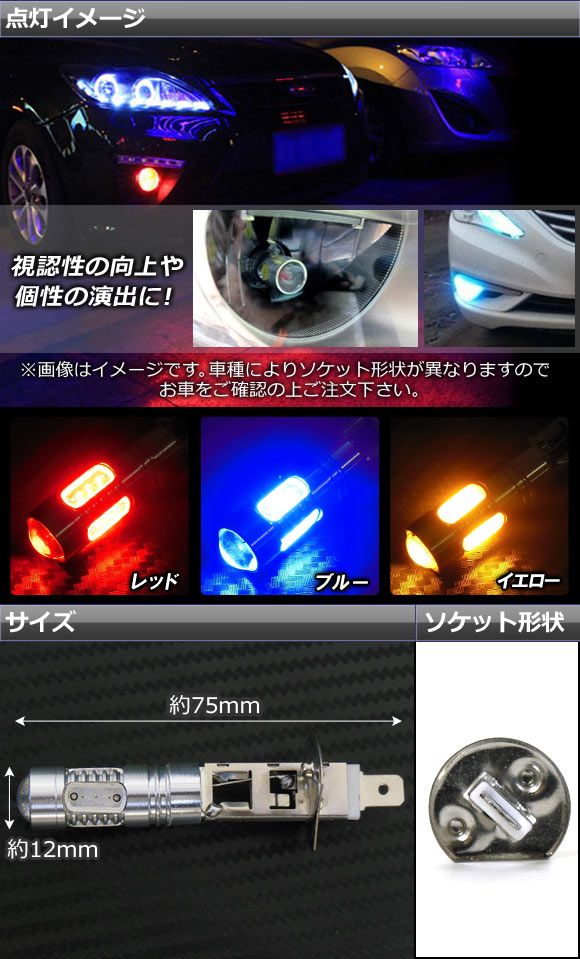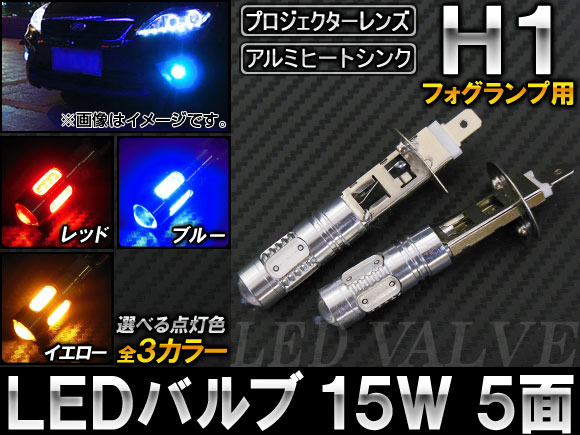 AP LEDバルブ H1 15W 12V 選べる3カラー AP-LB005 入数:2個 カラー: レッド ブルー イエロー
