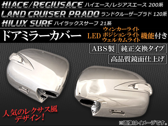 LEDウインカー機能付 ドアミラーカバー トヨタ ハイエース/レジアスエース 200系 2004年08月〜 シルバーメッキ 入数:1セット(左右) APSMCV002-SI