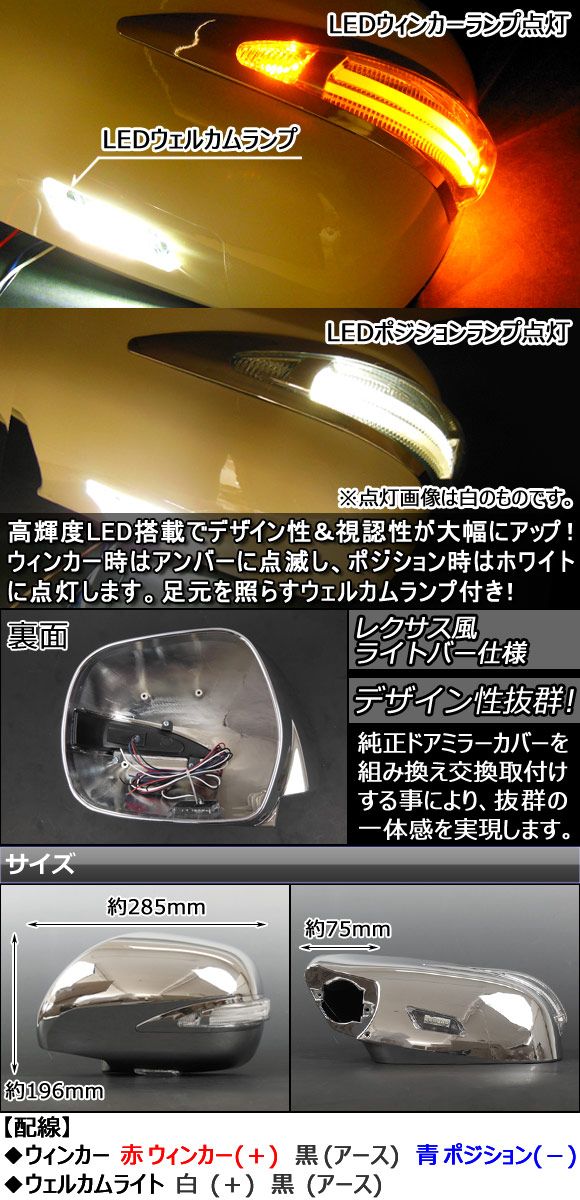 LEDウインカー機能付 ドアミラーカバー トヨタ ハイエース/レジアスエース 200系 2004年08月〜 シルバーメッキ 入数:1セット(左右) APSMCV002-SI AP ミラー カバー サイドミラー ドアミラー バックミラー レジアス エース HIACE REGIUSACE REGIUS ACE シルバー メッキ ランプ ライト サイド ウインカー ウィンカー ウェルカムランプ ウエルカムランプ フットランプ ポジションランプ ポジションライト ライトバー 純正交換