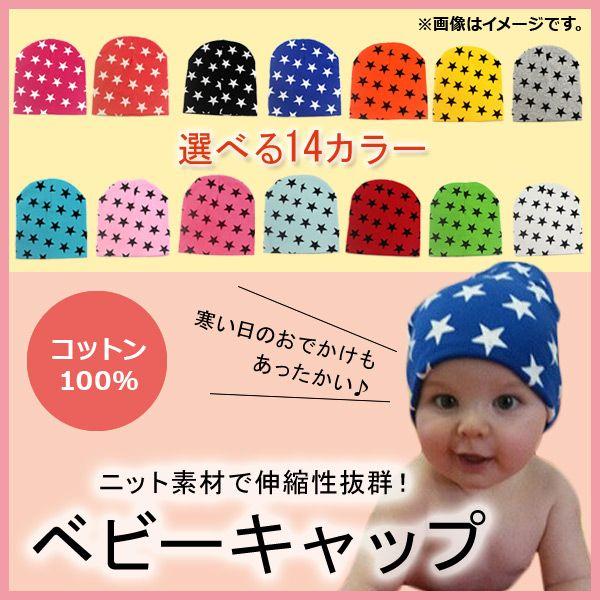 AP ベビーキャップ コットン100%のニット素材 寒い冬も安心 可愛らしいスター模様 選べる14カラー AP-AR073 カラー: ブラック ホワイト レッド ブルー イエロー グリーン オレンジ ピンク グレー ローズ ライトピンク ライトブルー シアン チェリー