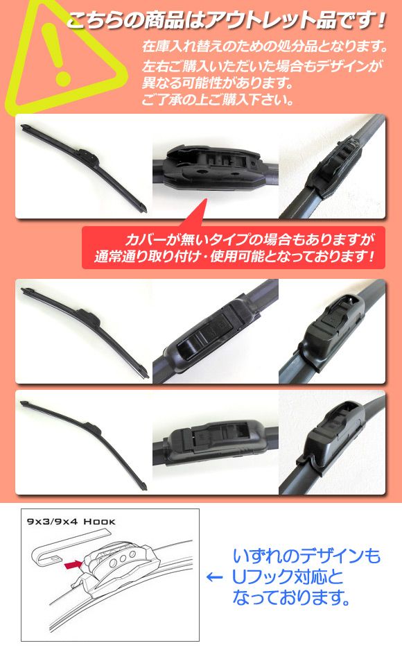 ※現車に装着されているワイパーの長さ・形状をよくご確認の上、同じ長さ・形状のワイパーをお買い求めください。