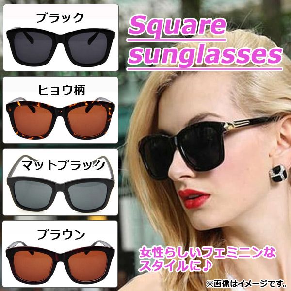 AP スクエアサングラス レディース カジュアルスタイルのアクセントに♪ 選べる4カラー AP-AR039 カラー: ブラック ブラウン マットブラック ヒョウ柄